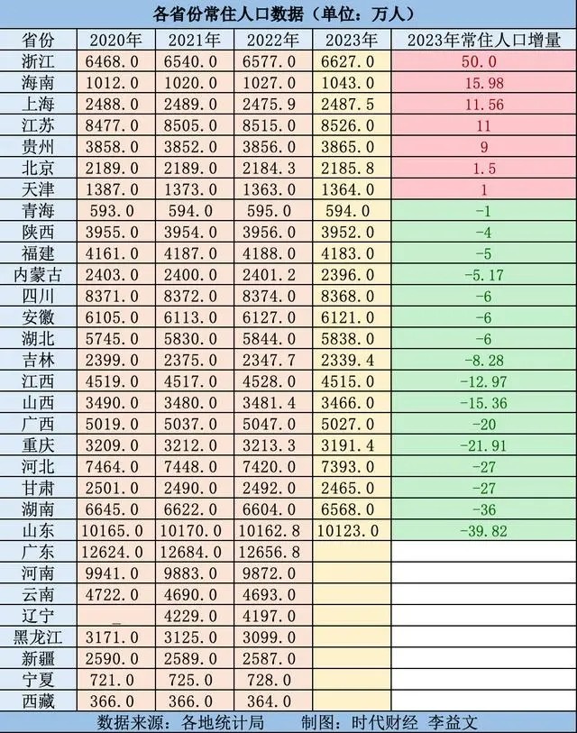就已经公布的常住人口增长而言,浙江稳居第一。
